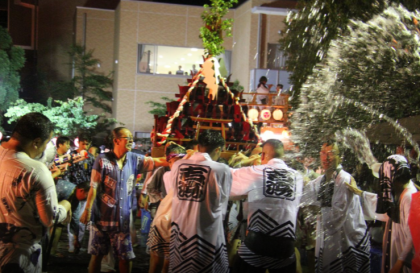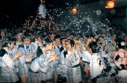 神輿が「湯」を浴びながら温泉街を練り歩きます。