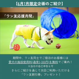 愛犬の施設使用料(通常3,300円)を無料にてご案内いたします。